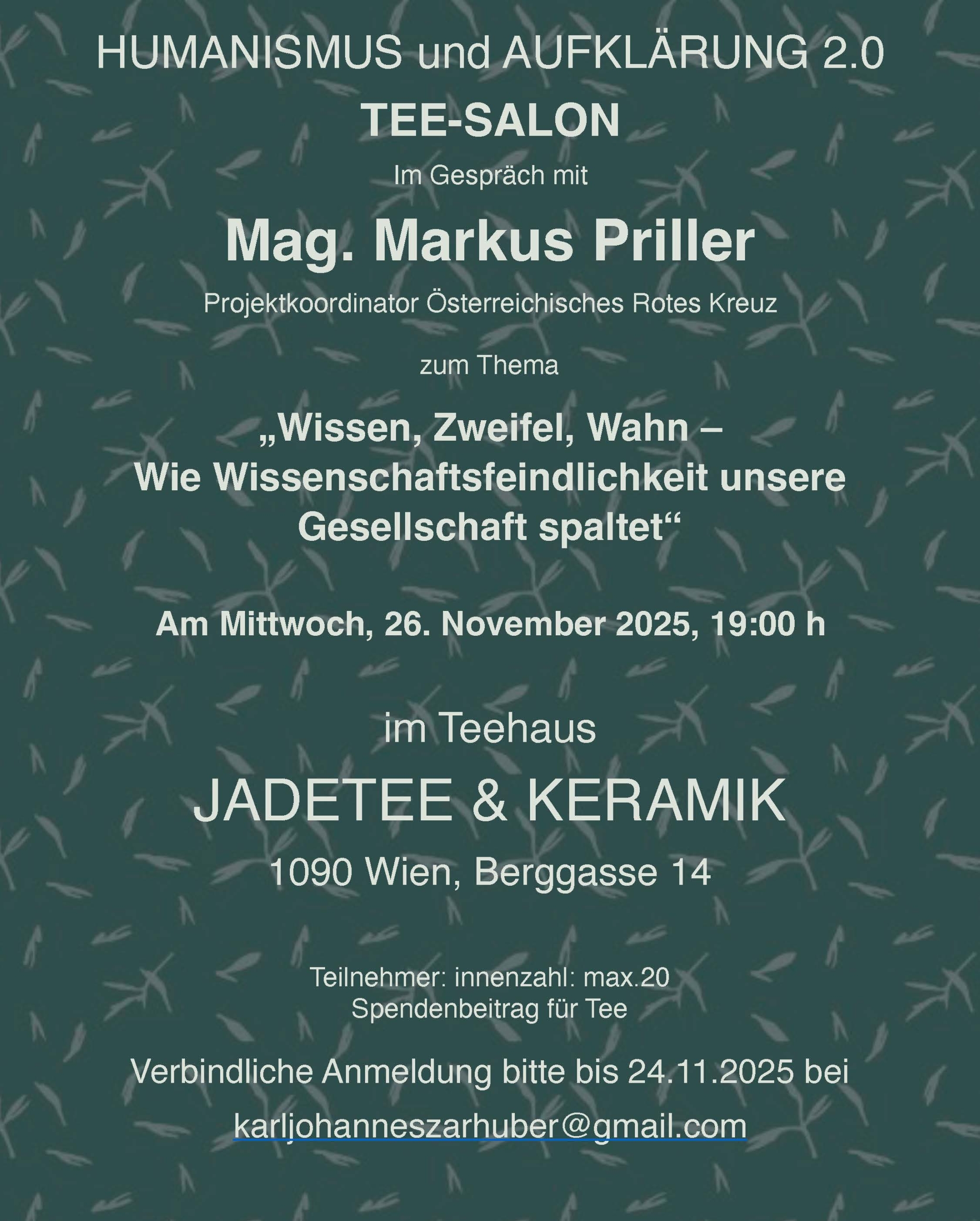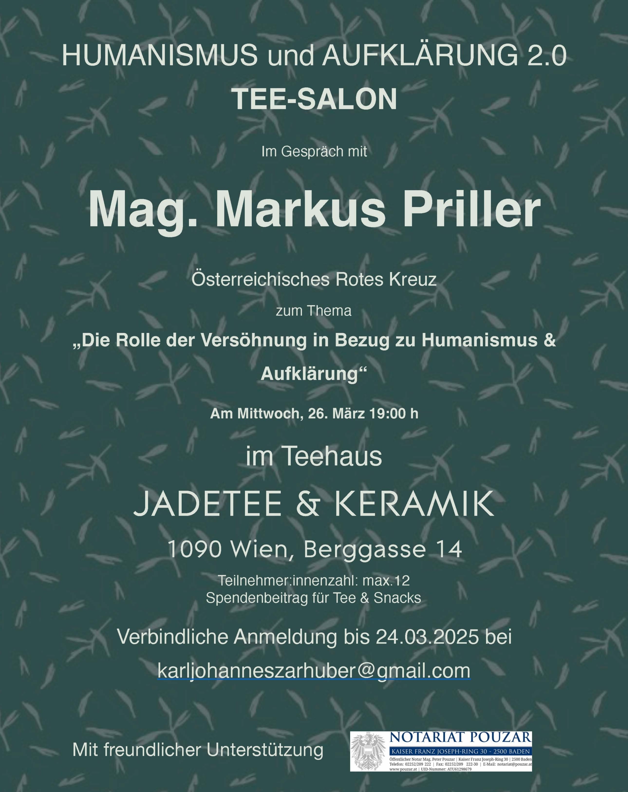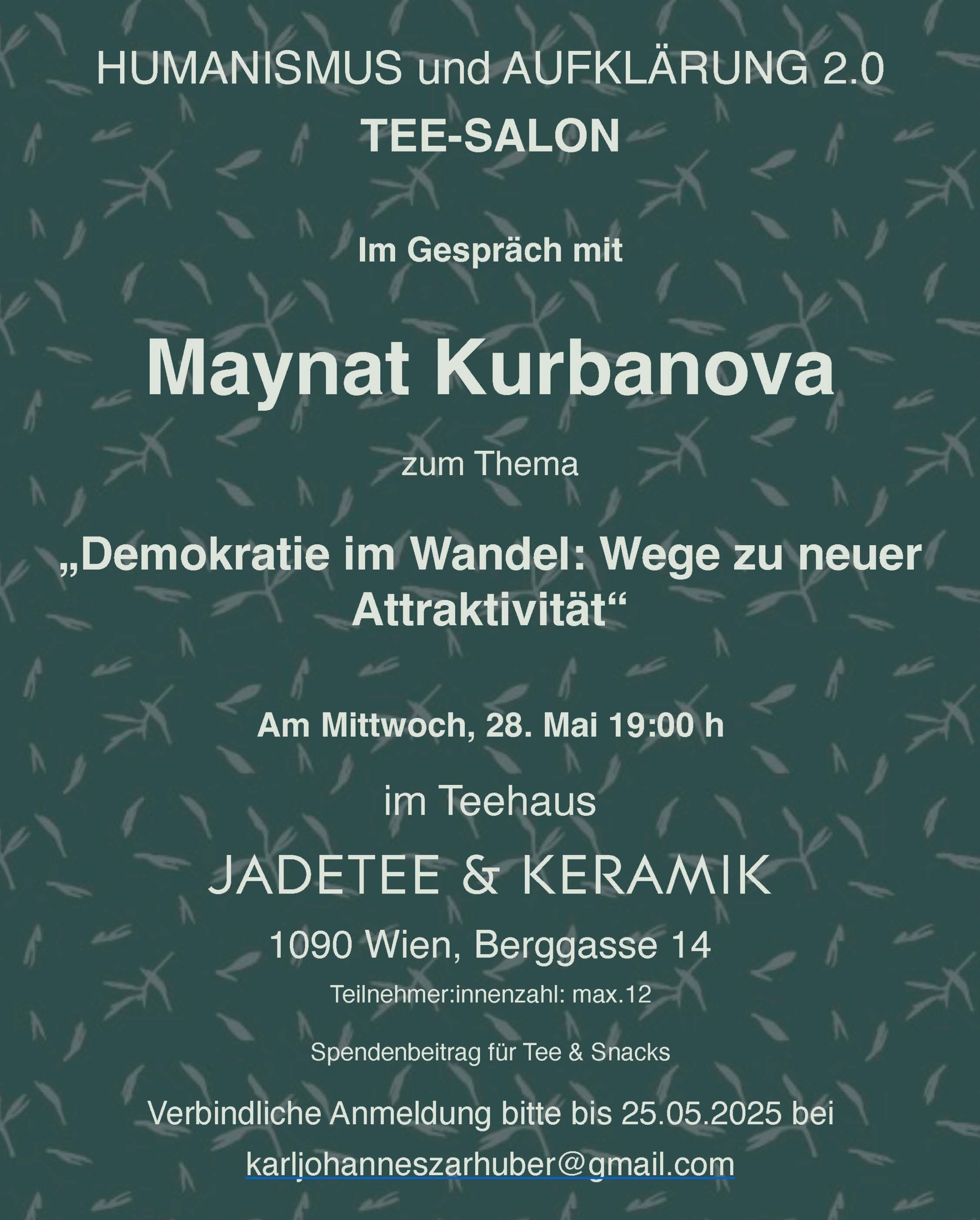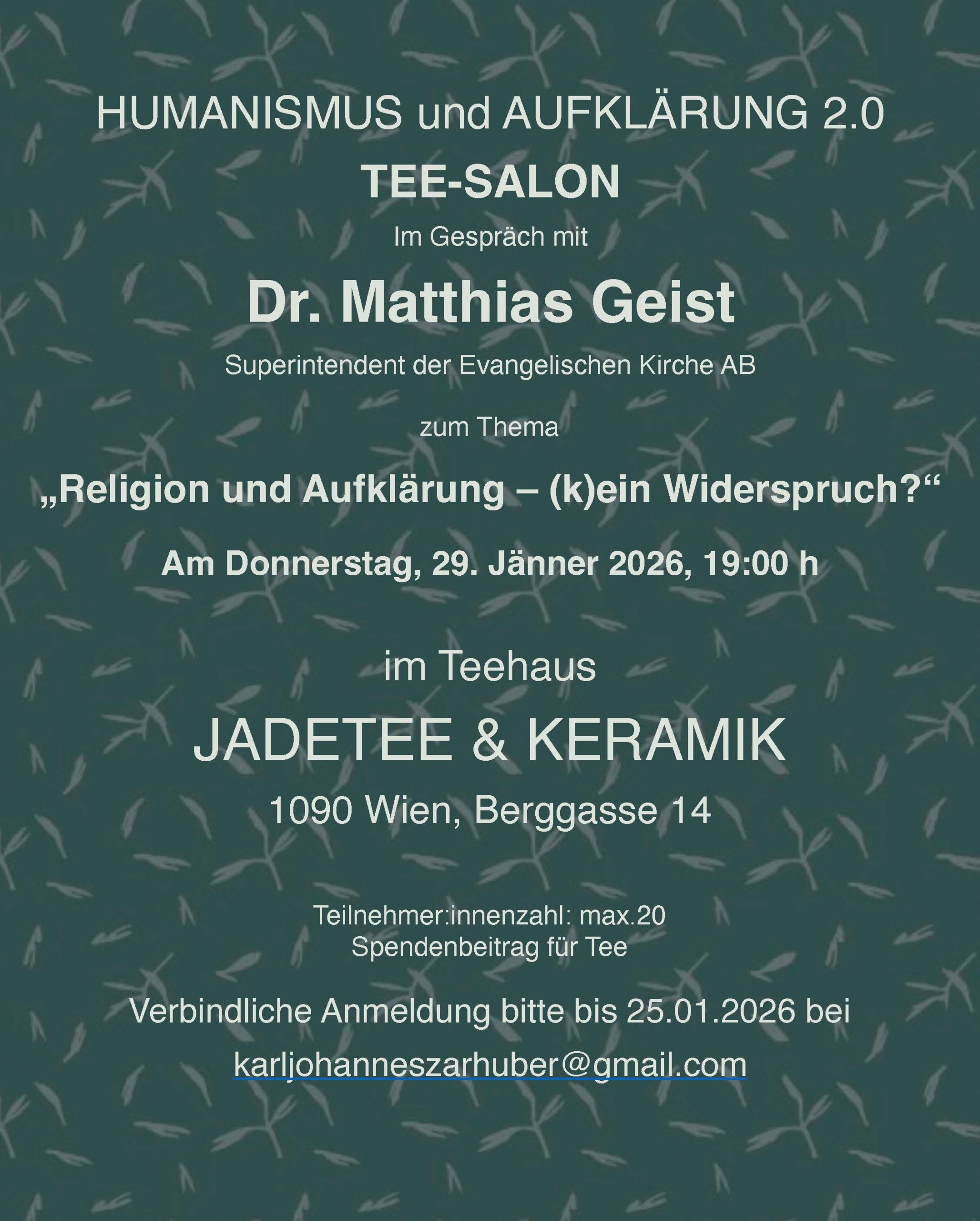 Für jeden TEE-SALON laden wir eine vortragende Person ein, die aus ihrer jeweiligen Perspektive und Expertise ein Thema auswählt, das Zugang zur Umsetzung von Werten in unserer lokalen, regionalen, nationalen und globalen Gesellschaft ermöglicht.